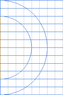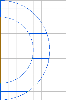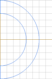 Consider the model shown in Pic.1 below with the semicircles having the radiuses of 2 and 3 and the common center at (0, 0). Suppose that you need to create several horizontal edges inside the block with the distance between consecutive edges equal to 0.5.